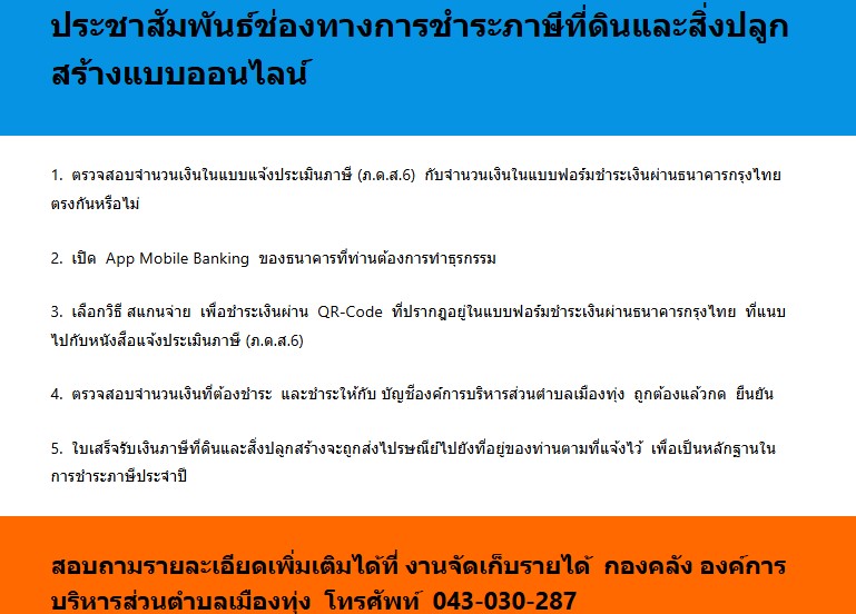 ประชาสัมพันธ์ช่องทางการชำระภาษีที่ดินและสิ่งปลูกสร้างแบบออนไลน์