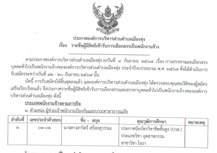 รายชื่อผู้มีสิทธิเข้ารับการเลือกสรรเป็นพนักงานจ้างดาวน์โหลด แนะแนวเรื่อง โครงการลดปริมาณขยะ อาสาสมัครท้องถิ่นรักษ์โลก ประกาศผู้ผ่านการสรรหาและเลือกสรรเป็นพนักงานจ้าง อบต.เมืองทุ่ง