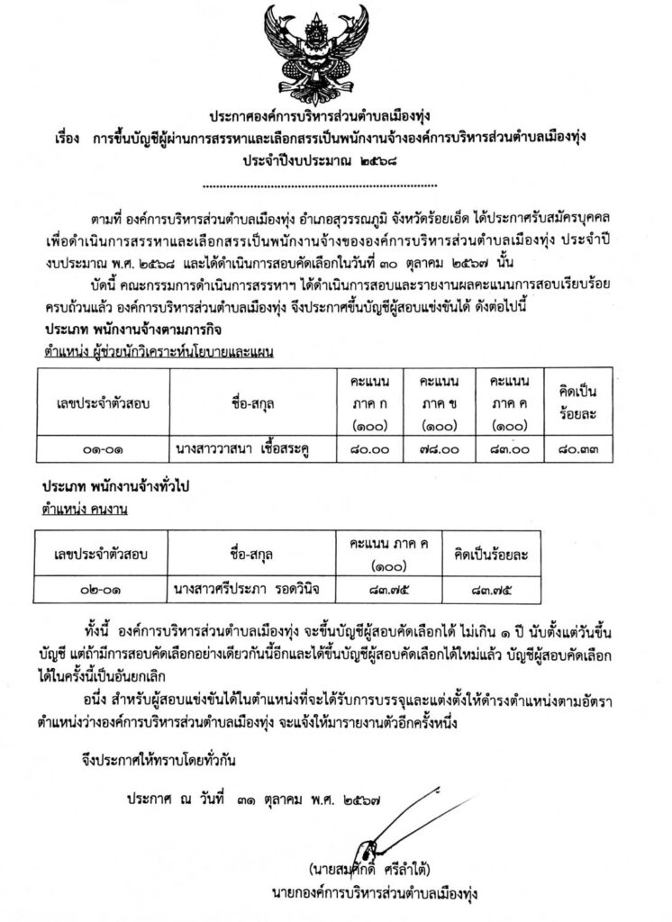 แนะแนวเรื่อง ประกาศ รายชื่อผู้มีสิทธิเข้ารับการเลือกสรรเป็นพนักงานจ้าง เผยแพร่แผนการจัดซื้อจัดจ้าง ปี 2568