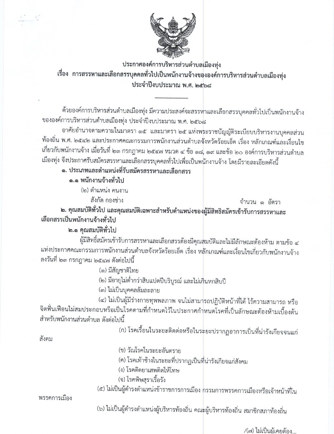 สรรหา พนง.จ้างดาวน์โหลด แนะแนวเรื่อง โครงการสัตว์ปลอดโรค คนปลอดภัย จากโรคพิษสุนัขบ้า ประจำปีงบประมาณ 2568 องค์การบริหารส่วนตำบลเมืองทุ่งอำเภอสุวรรณภูมิจังหวัดร้อยเอ็ด เรื่องถัดไป