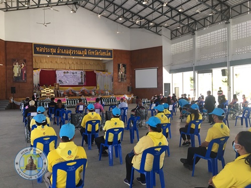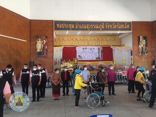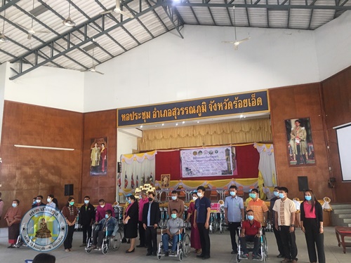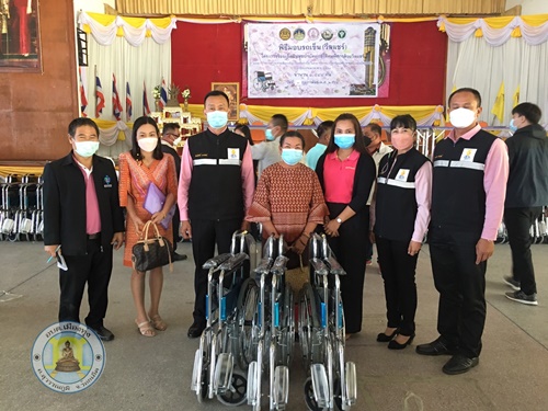 นางพวงพันธ์ คำสระคู เลขาฯ นายก รับมอบรถวีลแชร์ เพื่อมอบให้กับคนพิการตำบลเมืองทุ่ง จากสำนักงานพัฒนาสังคมและความมั่นคงของมนุษย์จังหวัดร้อยเอ็ด ณ หอประชุมอำเภอสุวรรณภูมิ