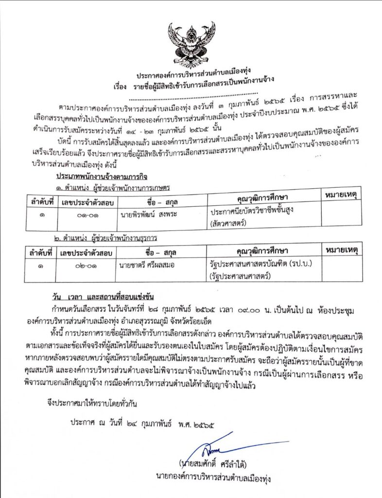 ประกาศรายชื่อผู้มีสิทธิเข้ารับการเลือกสรรเป็นพนักงานจ้าง อบต.เมืองทุ่ง แนะแนวเรื่อง การบริหารกิจการน้ำประปาหมู่บ้าน หมู่ที่ 1 ฐานข้อมูลผู้สูงอายุ