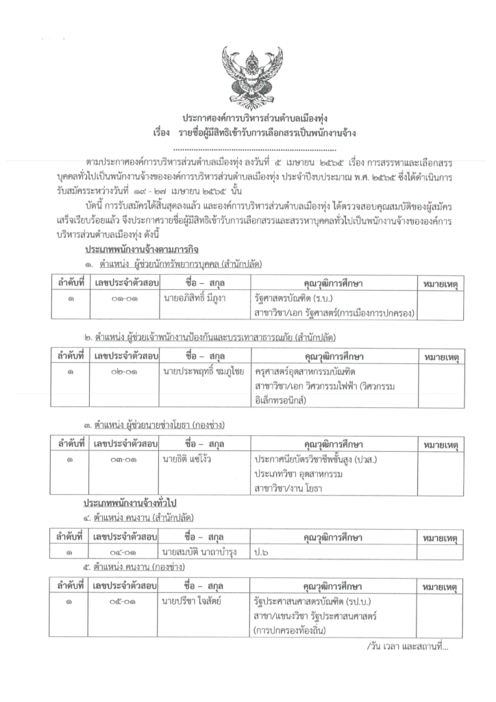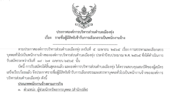 ประกาศรายชื่อผู้มีสิทธิ์เข้ารับการเลือกสรรเป็นพนักงานจ้าง อบต.เมืองทุ่ง ประกาศรายชื่อผู้มีสิทธิ์เข้ารับการเลือกสรรเป็นพนักงานจ้าง อบต.เมืองทุ่งดาวน์โหลด แนะแนวเรื่อง รายงานผลการดำเนินการตามนโยบายการบริหารทรัพยากรบุคคล ประจำปีงบประมาณ 2564 ขอเชิญร่วมสรงกู่เมืองอารัมย์