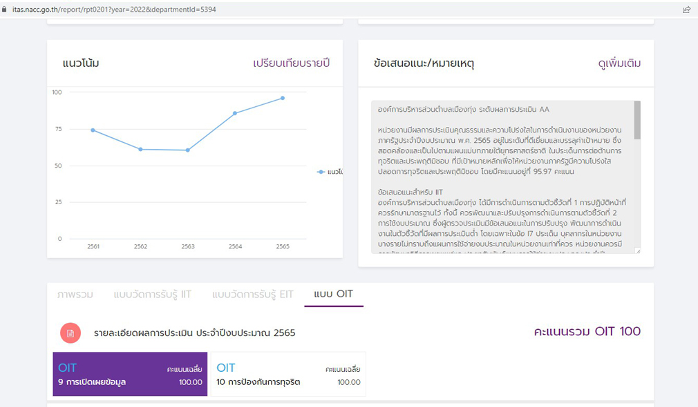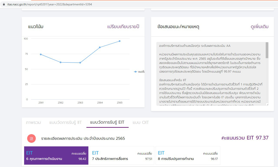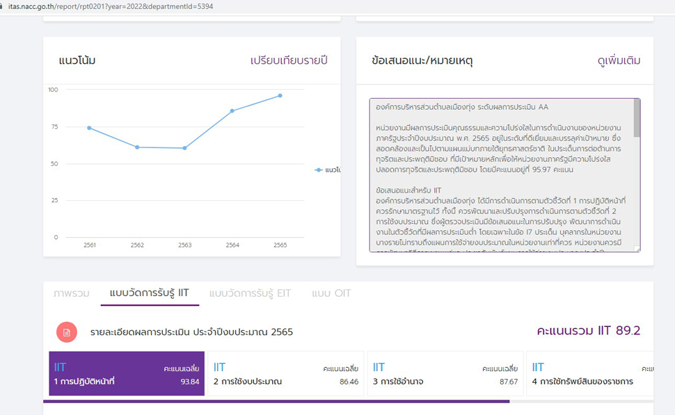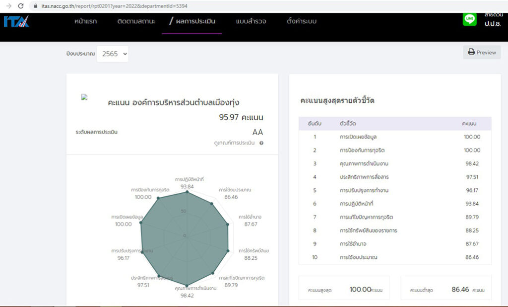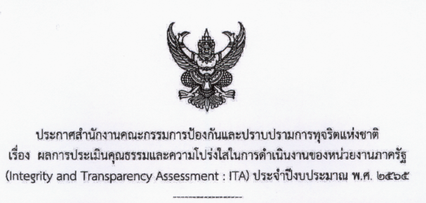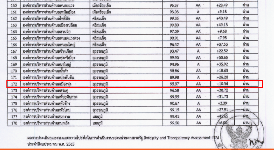 สำนักงานคณะกรรมการป้องกันและปราบปรามการทุจริตแห่งชาติ (สำนักงาน ป.ป.ช.) ดำเนินการประเมินคุณธรรมและความโปร่งใสในการดำเนินงานของหน่วยงานภาครัฐ หรือการประเมิน ITA ประจำปี งบประมาณ พ.ศ. 2565 องค์การบริหารส่วนตำบลเมืองทุ่ง ผ่านการประเมิน ผ่านการประเมิน ระดับ AA