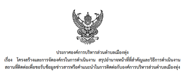 ประกาศขององค์การบริหารส่วนตำบลเมืองทุ่ง.