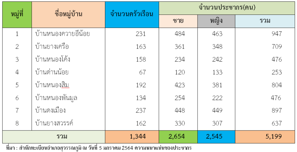 จำนวนประชากร ตำบลเมืองทุ่ง ข้อมูล เดือน มีนาคม 2565