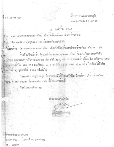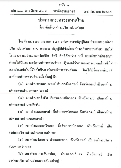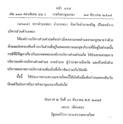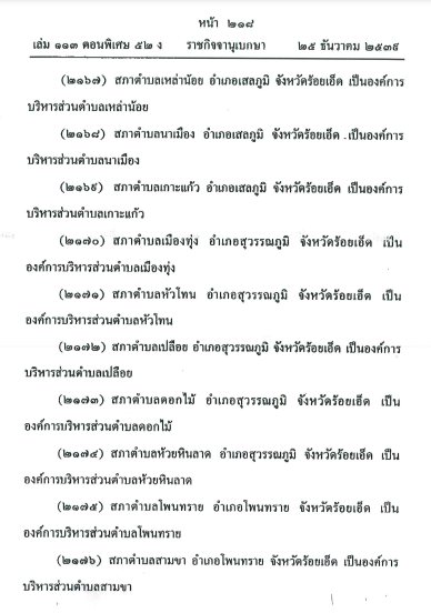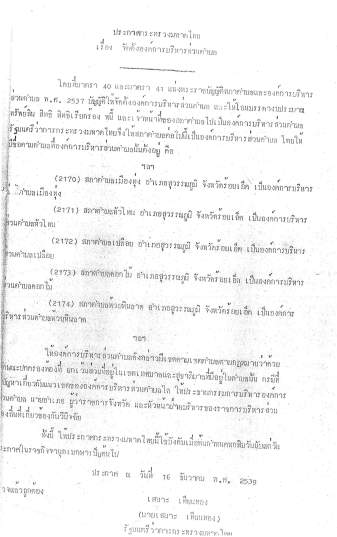 ประกาศการจัดตั้งองค์การบริหารส่วนตำบลเมืองทุ่ง